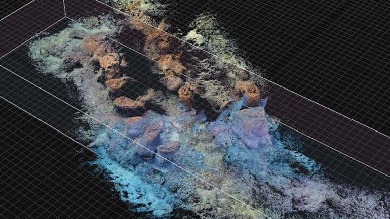 Dalgıçların inceleme yaptığı su altı görüntüsünün fotoğrametri kullanılarak oluşturulmuş 3 boyutlu görüntüsü